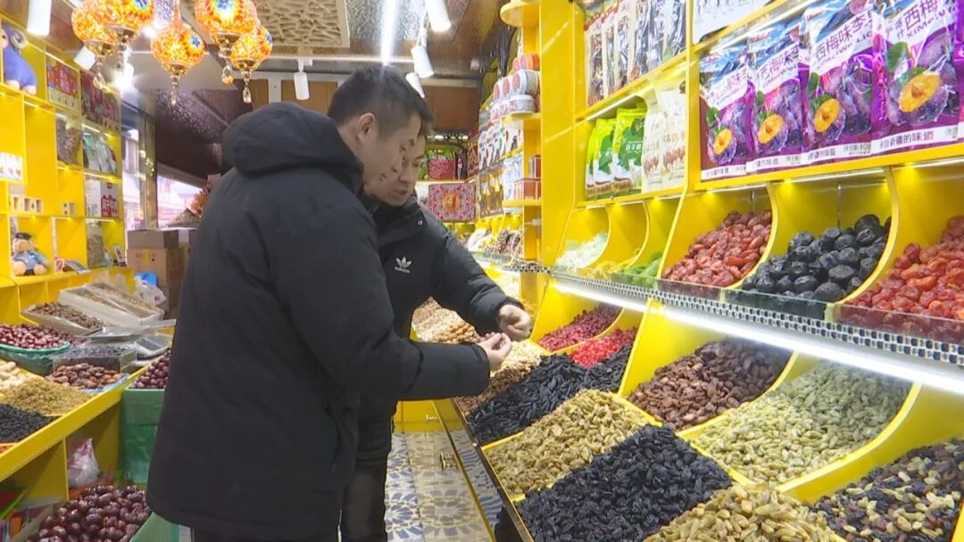 从事新疆特产销售的努尔顿·佐尔东告诉记者,店里准备的干果种类非常丰富,马上也快过年了,希望大家欢欢喜喜过个年。
