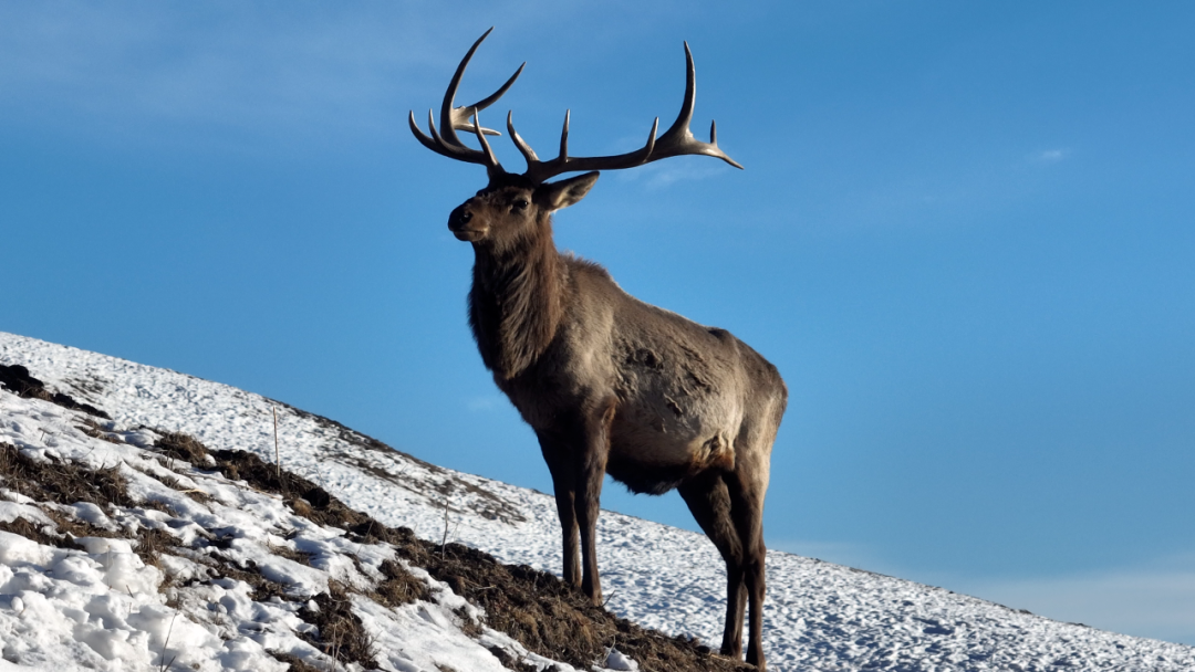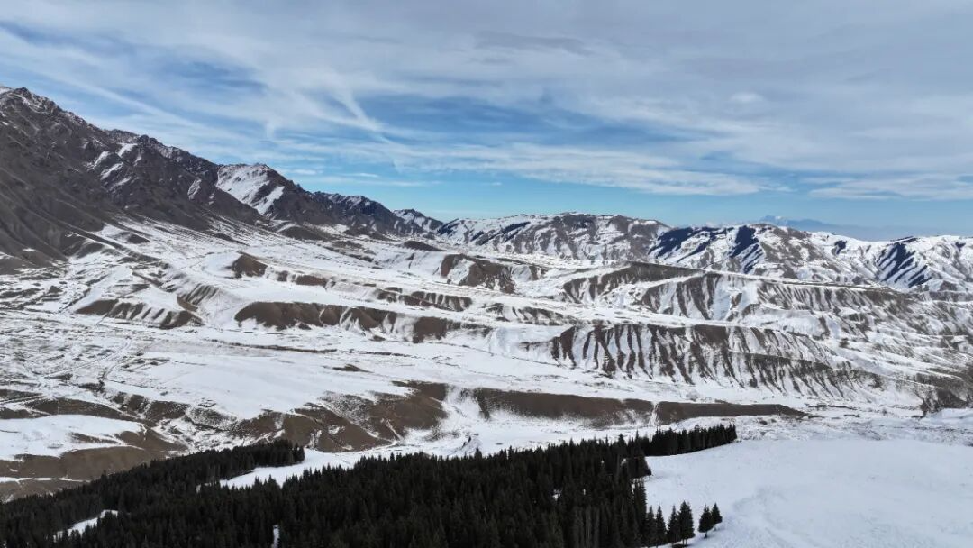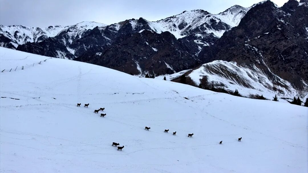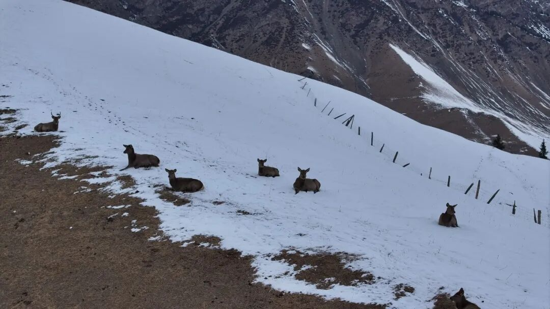 1月的昌吉市江布拉提草原,晴空如洗,皑皑白雪为草场穿上银装,巍峨天山横亘天际,积雪覆盖的山脊在阳光下熠熠生辉,勾勒出一幅雄浑壮阔的画卷。沉寂的雪原上,生机悄然涌动,天山马鹿、野猪等野生动物纷纷走出森林,在开阔的草场觅食嬉戏,为这片冬日秘境注入灵动活力。