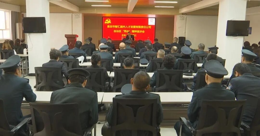 在昌吉人才港,自治区人大代表、昌吉金剑保安有限公司副经理马福江为昌吉市智汇庭州人才发展有限责任公司、建国路街道水林社区和金剑保安有限公司的80多名党员群众传达了自治区两会精神。马福江重点围绕维护社会大局稳定、大力增进民生福祉、实施就业优先战略等内容进行了宣讲。