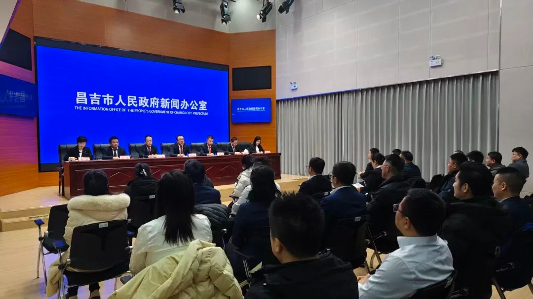 昌吉市委副书记、常务副市长马建明等参加新闻发布会。