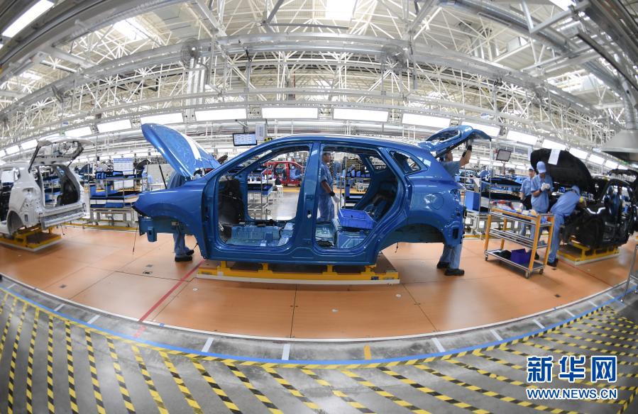 在上汽集团乘用车宁德基地总装车间,工人在装配生产线作业(2020年9月15日摄)。(新华社记者 宋为伟 摄)