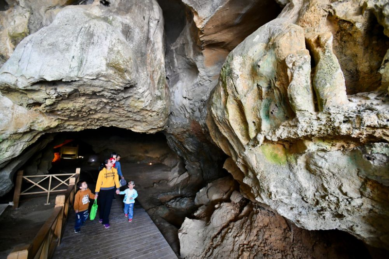 游人在位于福建省三明市三元区岩前镇的万寿岩遗址船帆洞游览(4月9日摄)。新华社记者姜克红摄