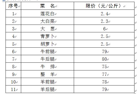 为进一步维护市场秩序,保障居民蔬菜、牛、羊肉等生活必需品供应及价格稳定,严厉打击价格违法行为,切实维护人民群众合法权益。现对本地供应的部分蔬菜、牛、羊肉等商品实行限价,实行时间:2022年10月25日至2022年10月31日。具体限价如下: