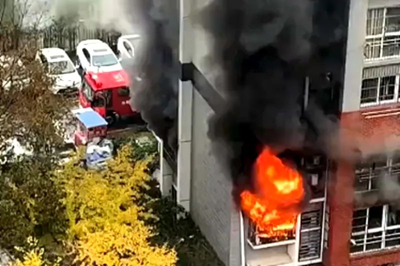 近日,江苏盐城一小区2楼突发火灾,现场浓烟滚滚,火焰已从窗口向外涌出。接警后,消防救援人员立即出动。