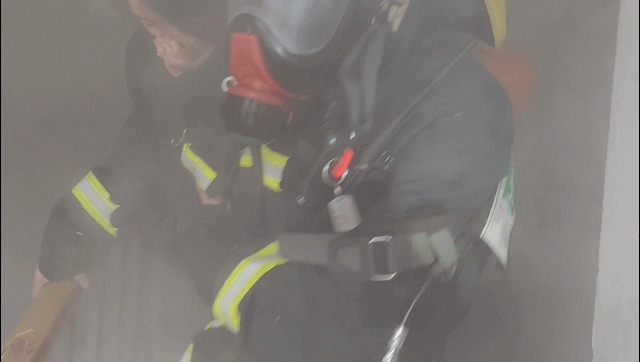 消防救援人员到场后,立即展开搜救和灭火工作。将被困人员转移到楼下安全地带,随后使用水枪对火势进行扑救。