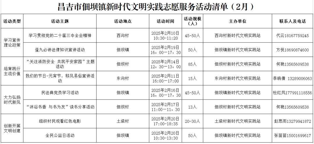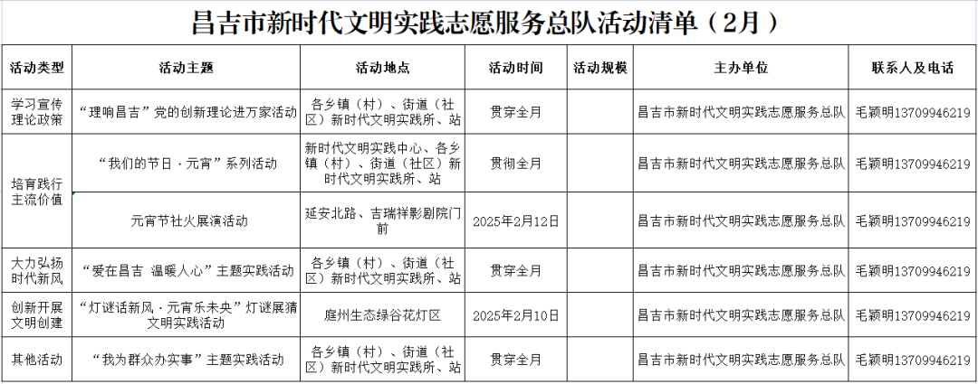 2月新时代文明实践志愿服务活动清单新鲜出炉啦!