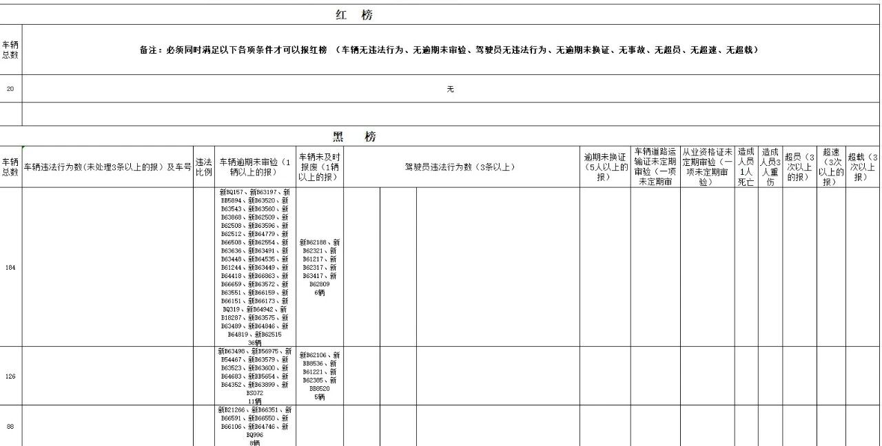 为督促道路运输企业履行交通安全主体责任,加强对道路运输企业和重点车辆及驾驶人道路交通安全管理,建立道路交通安全监管机制,切实消除全市“两客一危一货”道路运输企业交通安全隐患。昌吉市公安局交通管理大队采取“红黑榜”曝光途径,对“红榜企业”进行表扬,通过对存在安全隐患的“黑榜企业”进行曝光,引起企业的足够重视,切实履行企业主体责任,及时消除安全隐患,预防和减少道路交通事故。