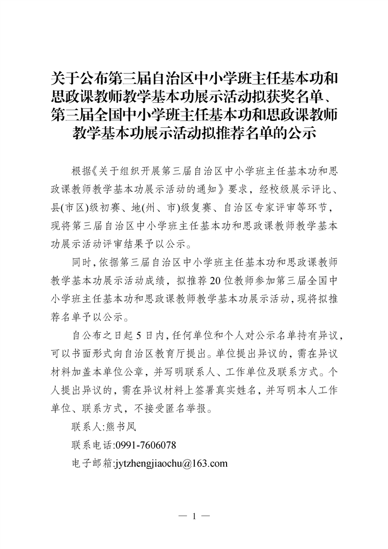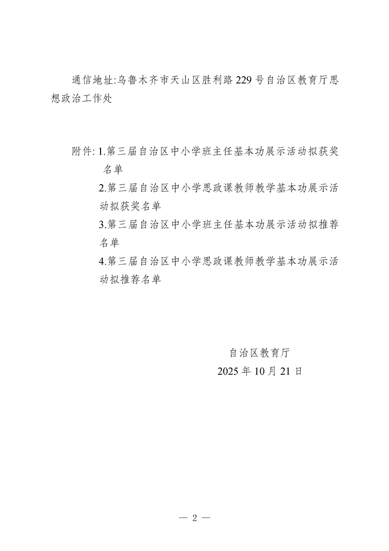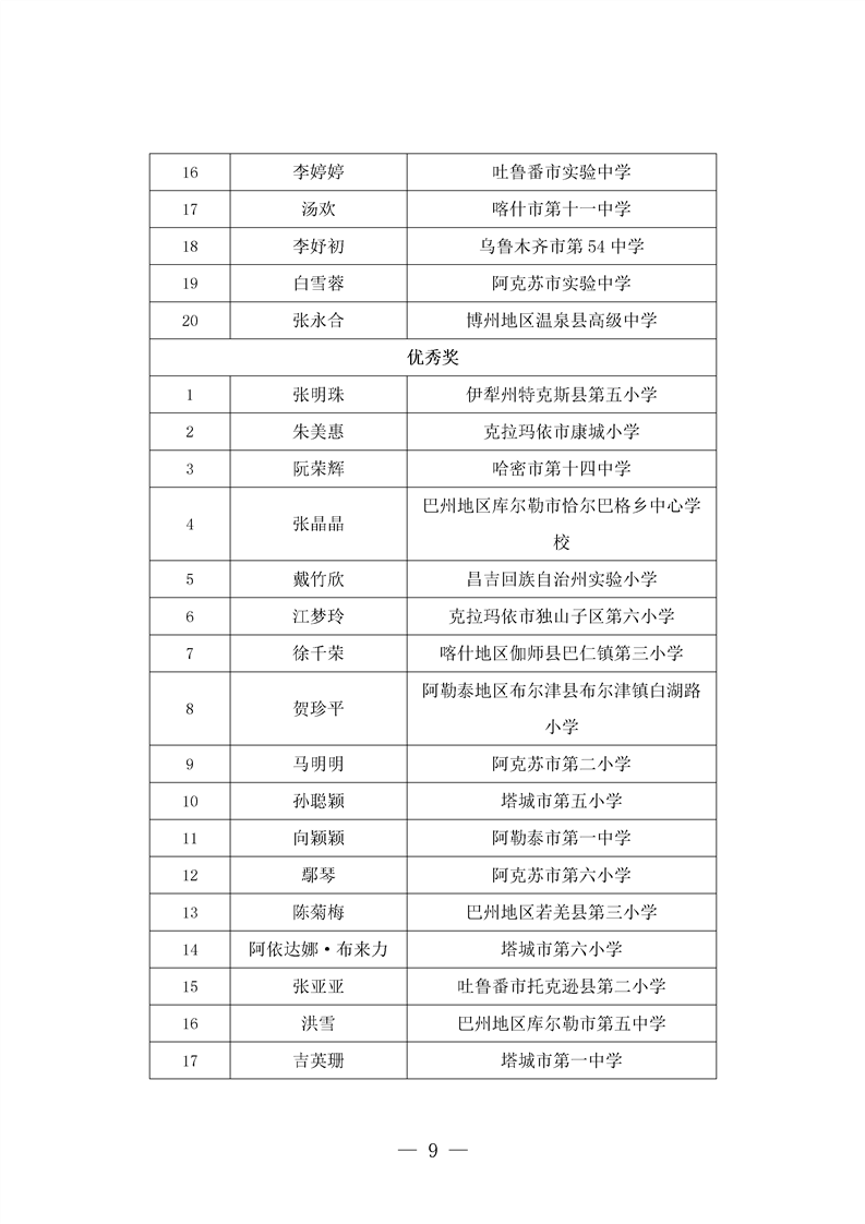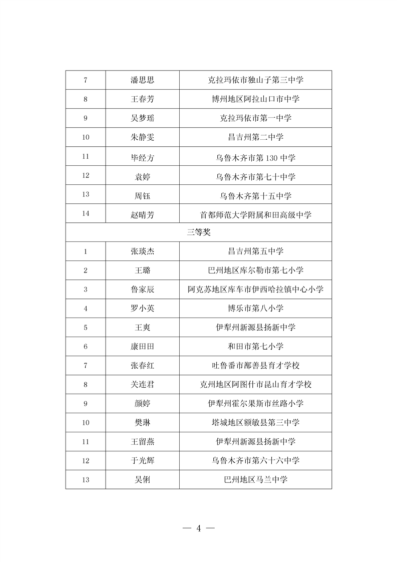 近日,新疆维吾尔自治区教育厅公布了第三届自治区中小学班主任基本功和思政课教师教学基本功展示活动结果,昌吉市多位老师上榜。昌吉市第十小学教师叶婷宇、昌吉市第一中学教师唐凯琦、昌吉市第二小学教师于小斐分别荣获自治区中小学班主任基本功展示活动二等奖、三等奖和优秀奖;昌吉市第三小学教师田梅荣获自治区思政课教师教学基本功展示活动三等奖。