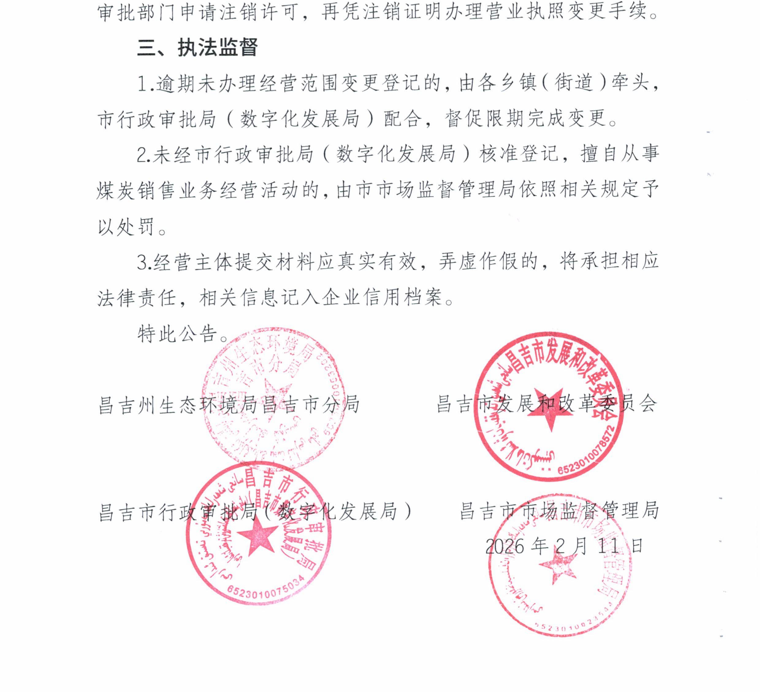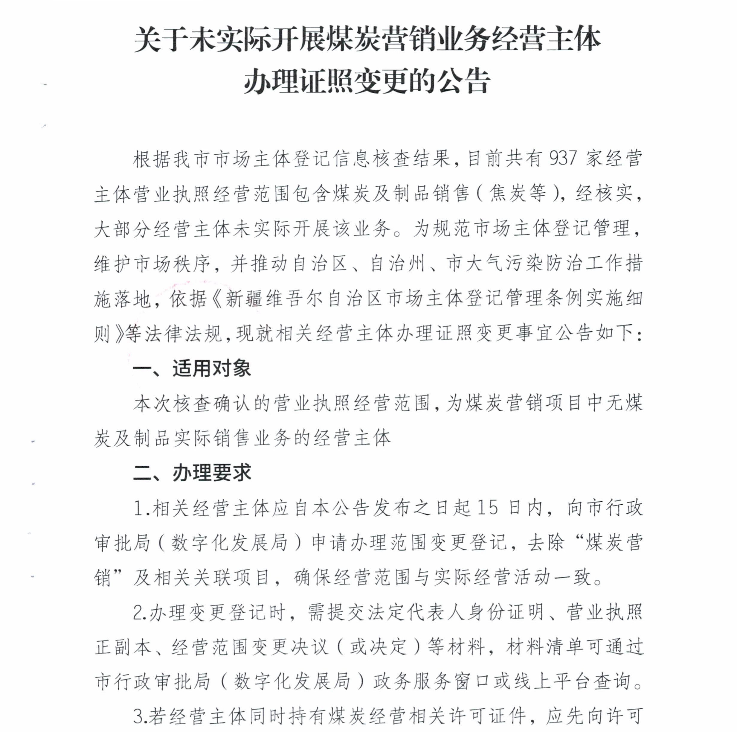 关于未实际开展煤炭营销业务经营主体办理证照变更的公告