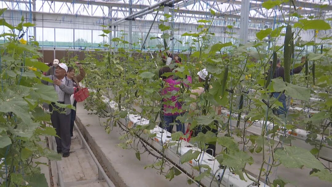 昌吉市佃坝镇副镇长谭舒月介绍说:“这批黄瓜采用椰糠+无土栽培技术进行栽种,目前已全部成熟,进入采摘旺季,今年营业额预计达10万元左右。”