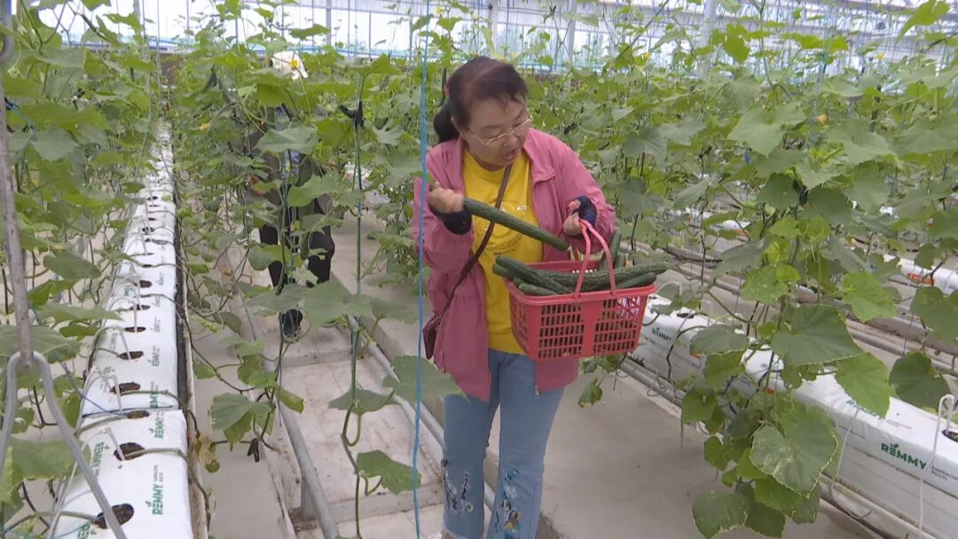 张泉荣说:“来了以后感觉很好,无土栽培、科学种植、无公害,今天买了5公斤黄瓜。”