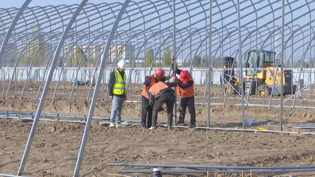 昌吉市三工镇庙工村温室大棚(乡村振兴)项目是福建省泉州市重点援疆项目,总投资630万元,规划建设10座温室大棚,总面积7055平方米。项目于今年7月开工,截至目前,10座温室大棚的混凝土基础已经完成,已完成2座大棚的安装,施工方正组织工人安装和焊接剩余大棚。