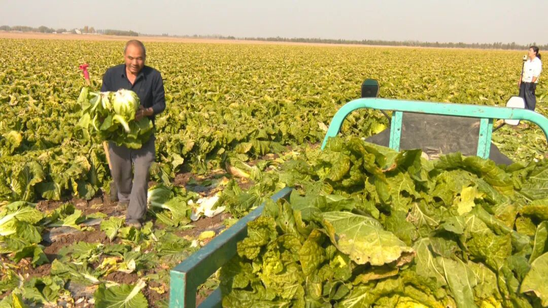 眼下,昌吉市的冬储白菜迎来丰收,田间地头村民们正忙着采收、装运一派热火朝天的景象。