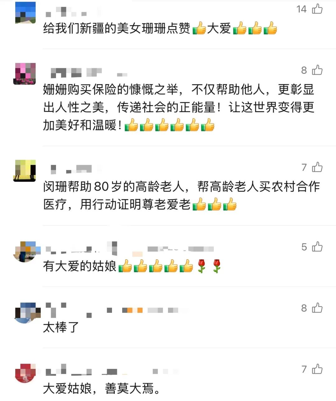 闵珊说:“我们做这件事情,全程是有村委会的干部陪同我们一起。”最终,闵珊共为村里48位老人缴纳了医保视频发出后, 网友们纷纷为这位昌吉姑娘点赞。