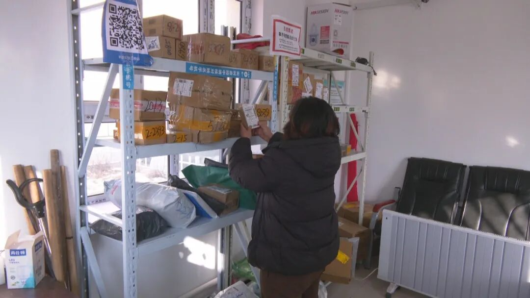 1月4日,在昌吉市硫磺沟镇联亨超市内的快递驿站里,店主乔俊营正忙着将新派送来的快递扫描入库、整齐摆放入架;居民自助查找快递后,在出库一体机上扫码即可完成签收,整个流程高效又顺畅。